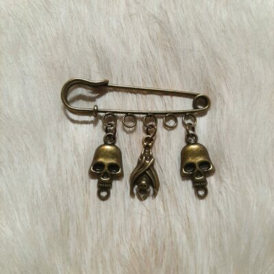 Broche Artisanale aux Crânes et Chauve-souris