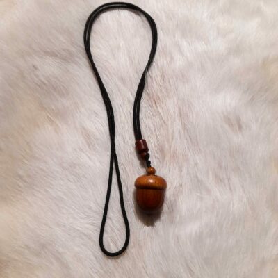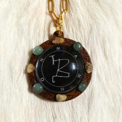 En son centre repose un parchemin scellé dans une cire noire consacrée, renforçant la barrière subtile autour de son porteur. Chaque pièce est unique, les veines et nuances naturelles du bois portant leur propre vibration.