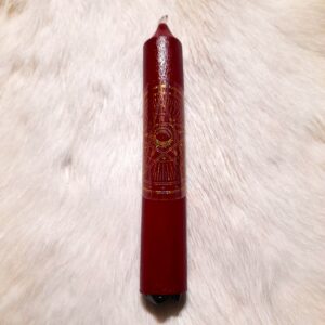 Peint à la main et verni rituellement, Voluntas est recouvert d’un rouge consacré.