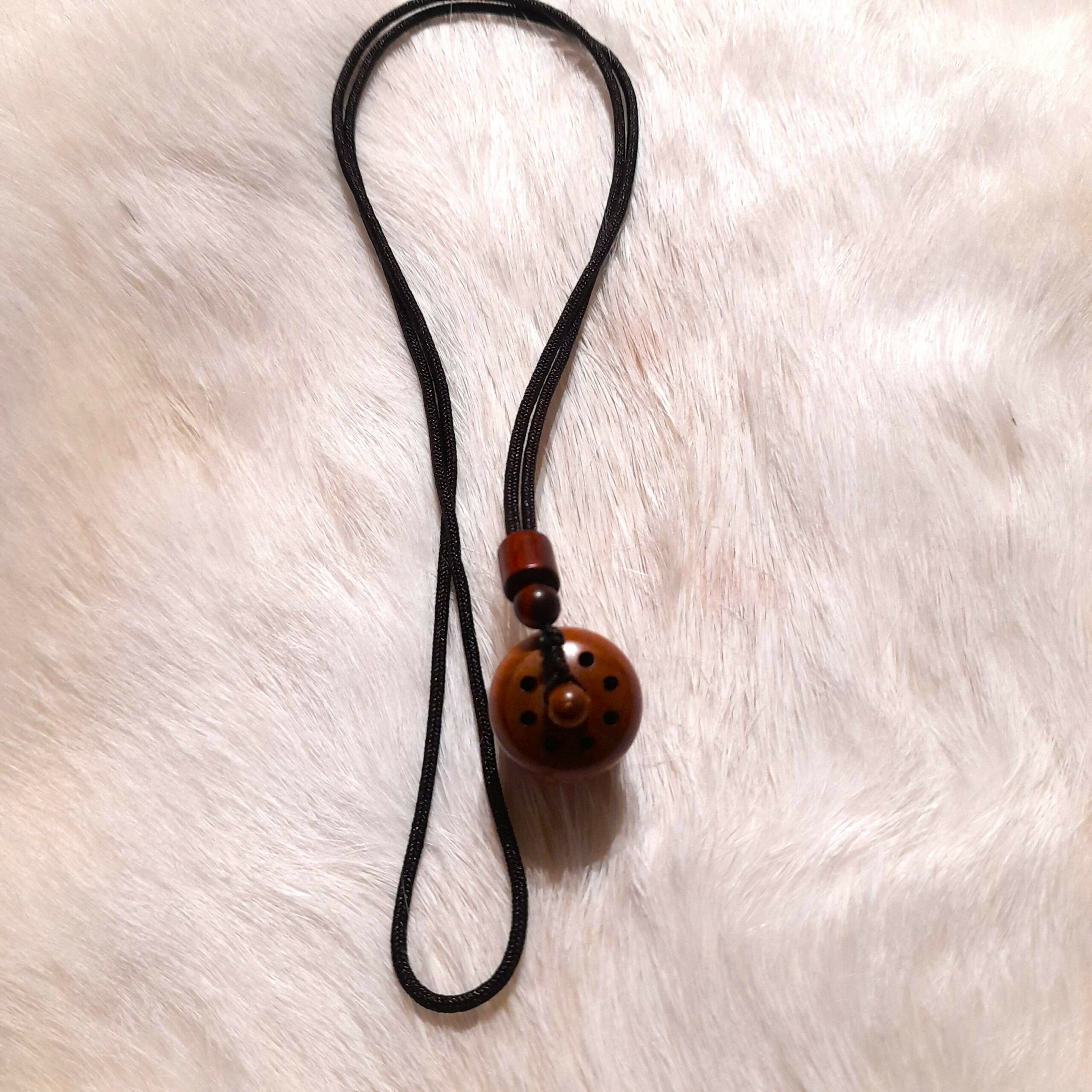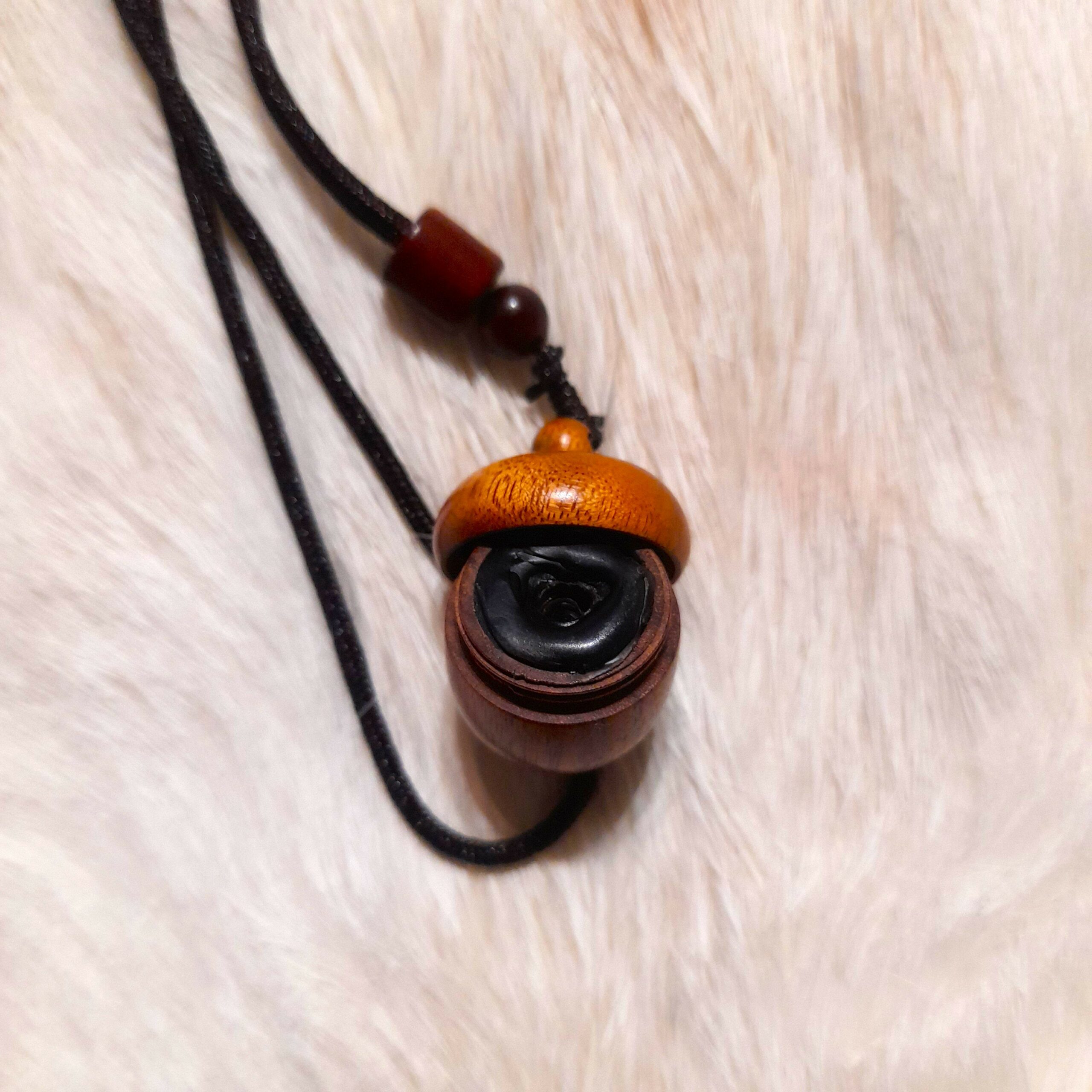 En son centre repose un parchemin scellé dans une cire noire consacrée, renforçant la barrière subtile autour de son porteur. Chaque pièce est unique, les veines et nuances naturelles du bois portant leur propre vibration.