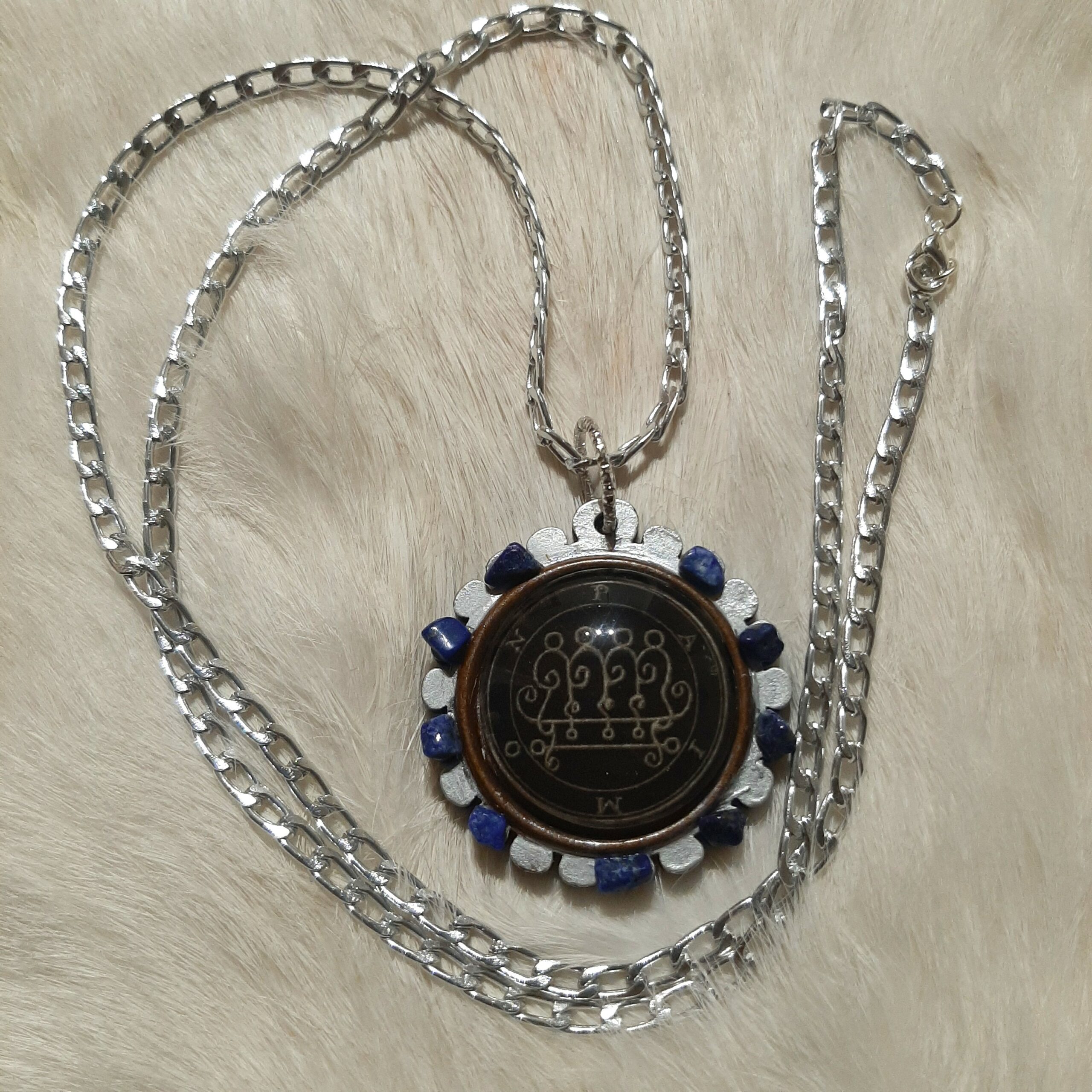 Monté sur une chaîne argentée en acier inoxydable, ce pendentif allie élégance, solidité et symbolisme. Chaque pièce est unique, réalisée artisanalement avec intention, puis consacrée sur l’autel du Roi Paimon avant envoi, afin d’activer pleinement ses propriétés magiques et spirituelles.